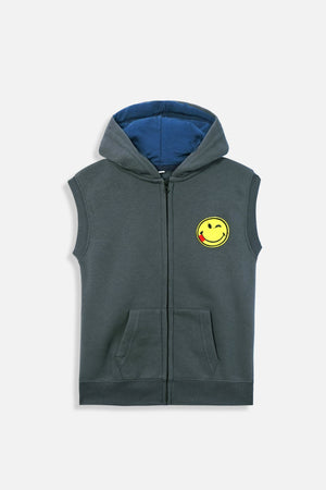 Boys Grey Sleeveless Embroided Hoodie