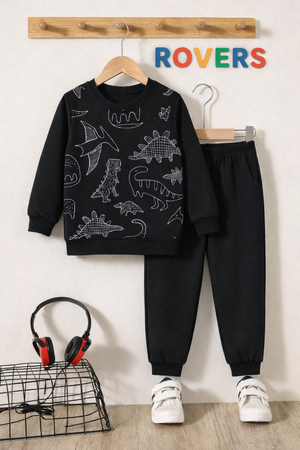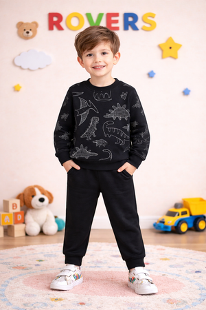 Boys Premium Quality "Dinosaur" Printed Fleece Suit -BLACK